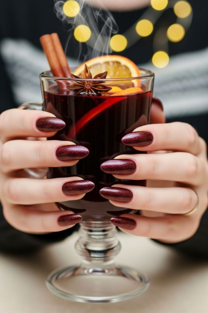 Wine and Glitter Fade nails blend deep berry tones with a sparkling gradient for a festive, fall-ready look. The rich wine base feels classy, while the glitter tips add a playful touch. I love how this design transitions effortlessly from day to night, making it a must-try for nail trends for fall this year.