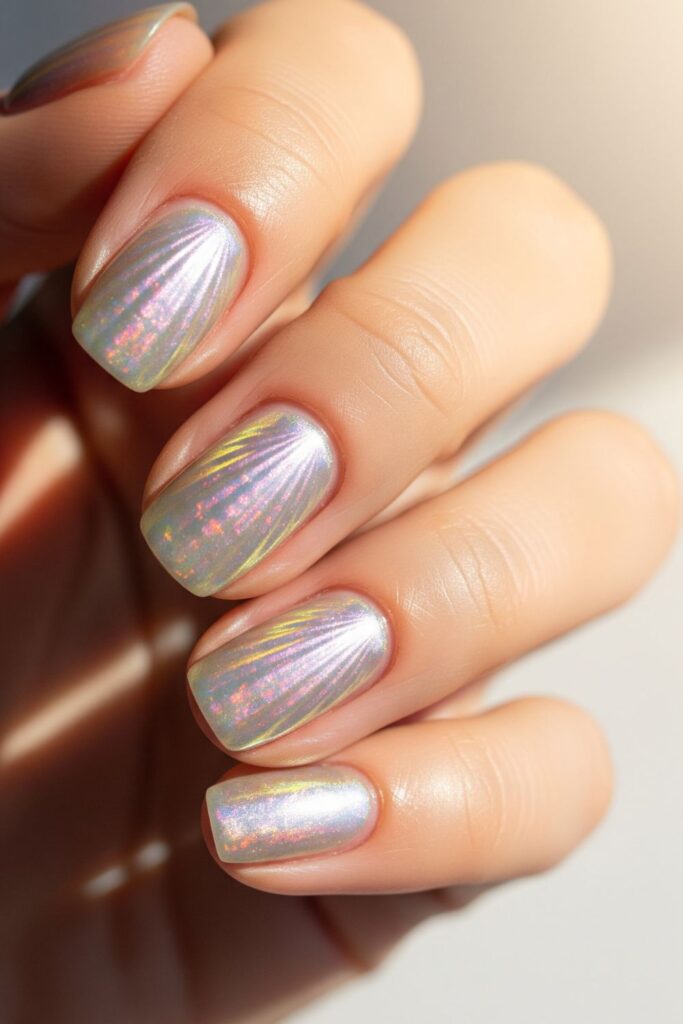 These nails shimmer with an iridescent pearly finish and delicate seashell-inspired ridges. I love how they feel elegant yet beachy, making them perfect for End of summer nails ideas. They capture that last seaside escape of the season, adding a soft glow to any look while being subtle enough for everyday wear.