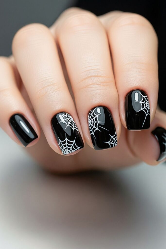 Delicate spider webs add a mysterious flair without going overboard. I like how this design works perfectly as simple Halloween nails but still looks trendy and stylish. Whether done on black, white, or nude bases, webs look classy yet festive. Perfect for cute Halloween nails or short nail lengths.